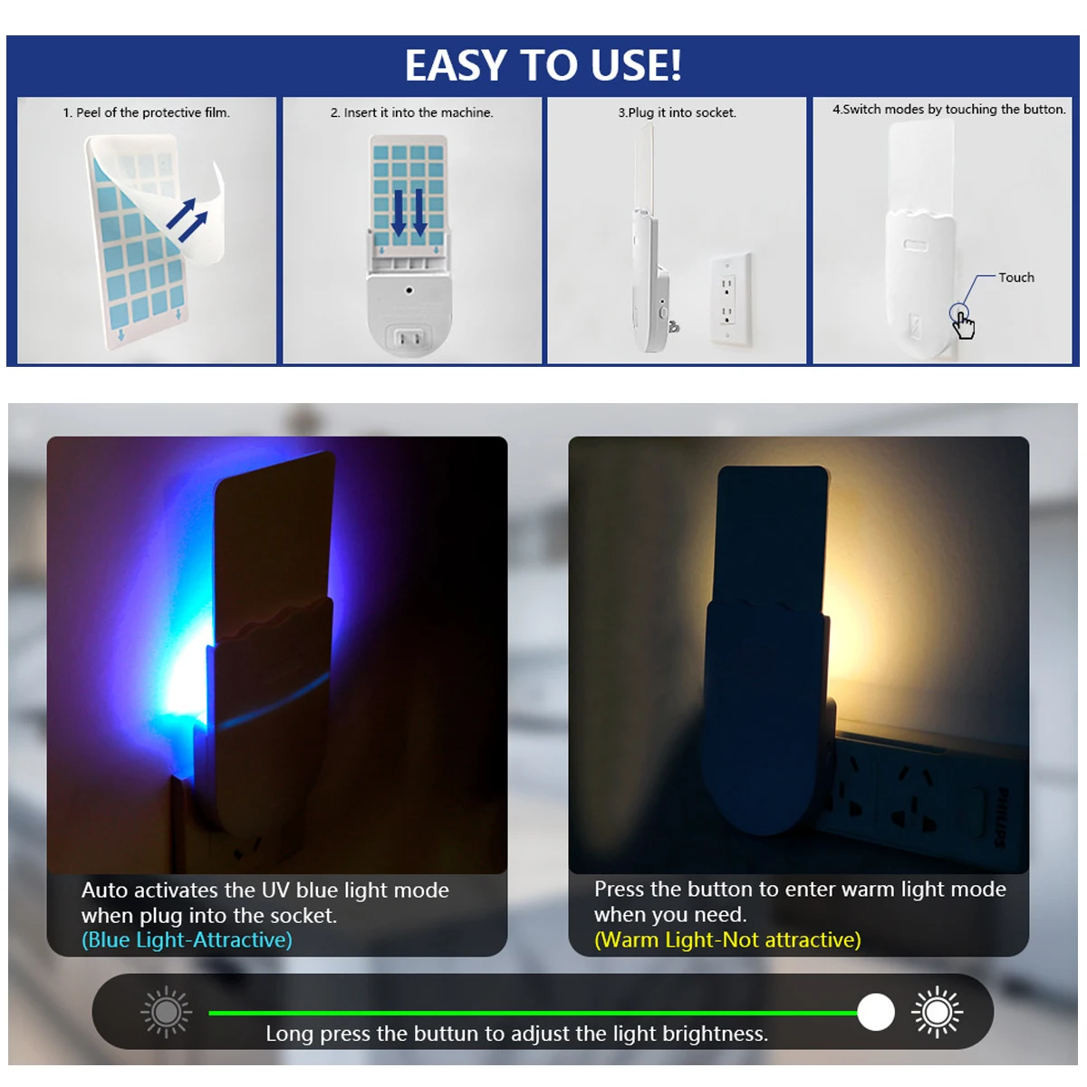Placa adesiva assassino de mosquitos Iamp, armadilha adesiva não tóxica interna, armadilha de insetos voadores multifuncional com pequena luz noturna