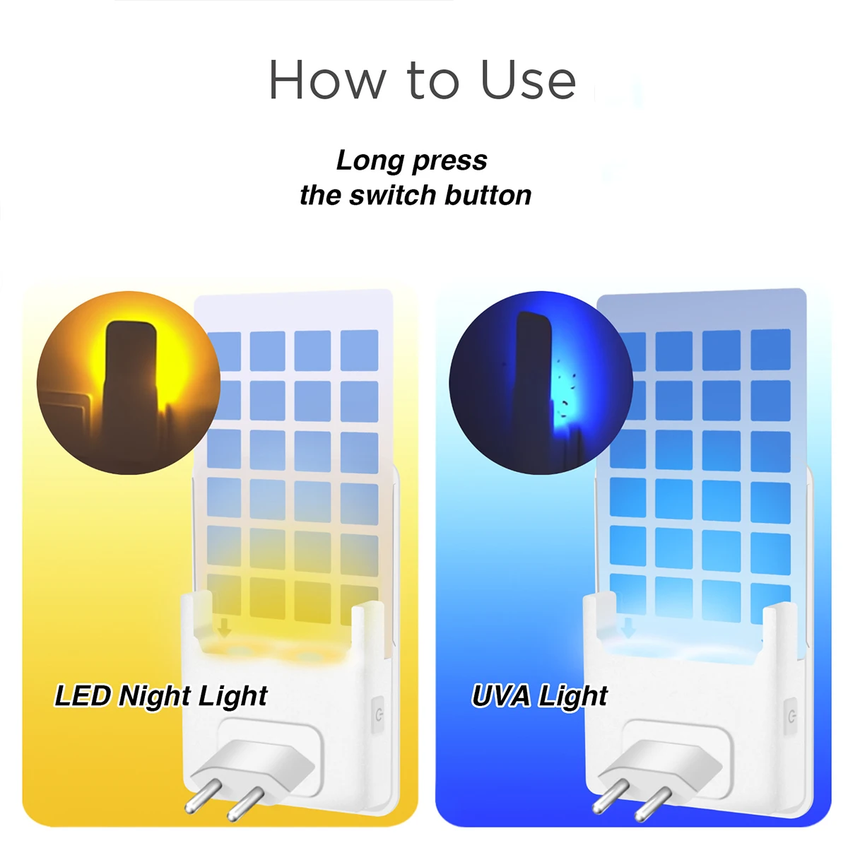 2.Seja no modo armadilha de mosquitos de luz roxa ou no modo de luz noturna, você pode pressionar longamente o botão para realizar o escurecimento infinito e pode escolher o brilho de acordo com você.